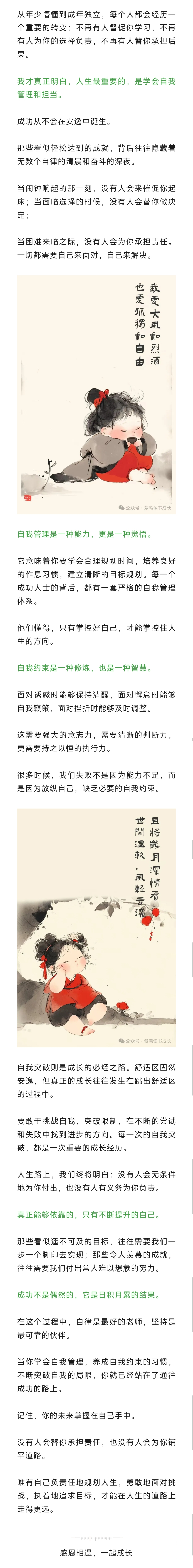 《人生感悟》:“成功的路上,沒有人會叫你起床,也沒有人會為你買單。你需要自我管理,自我約束,自我突破1