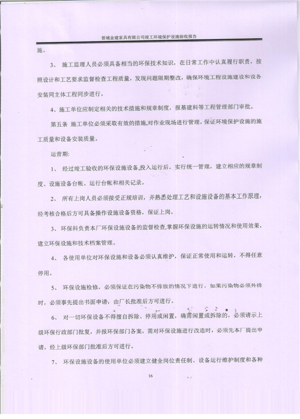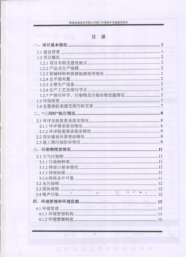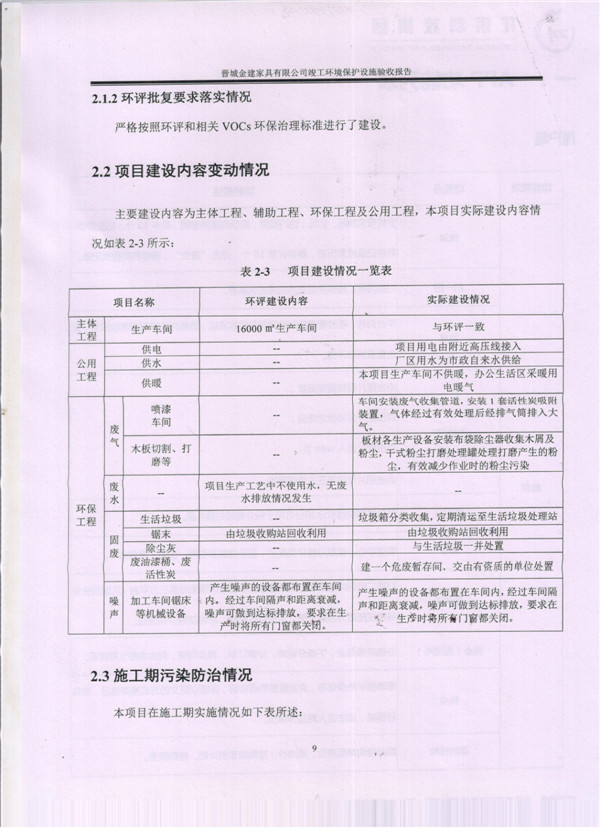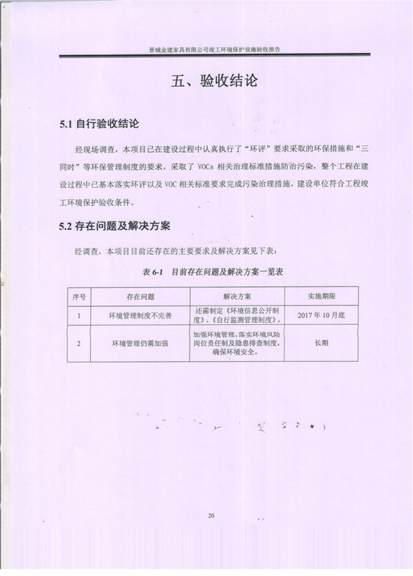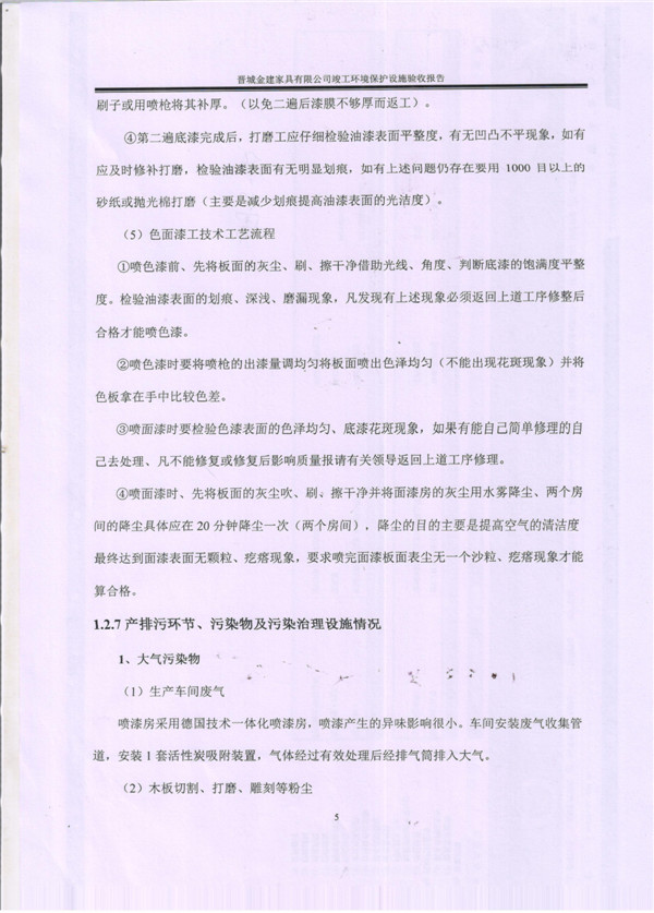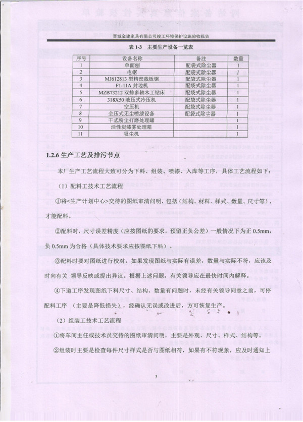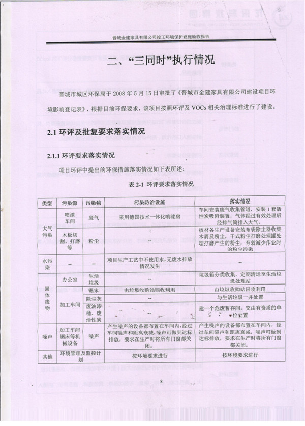 晉城市金建家具有限公司竣工環(huán)境保護(hù)設(shè)施驗(yàn)收報告