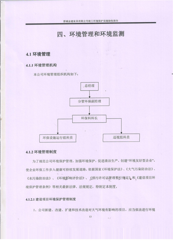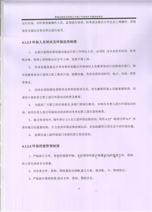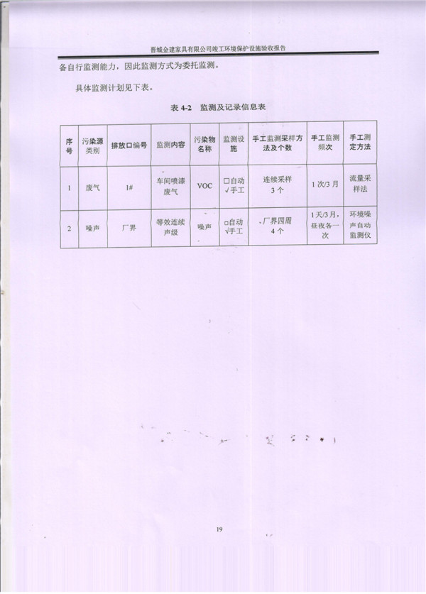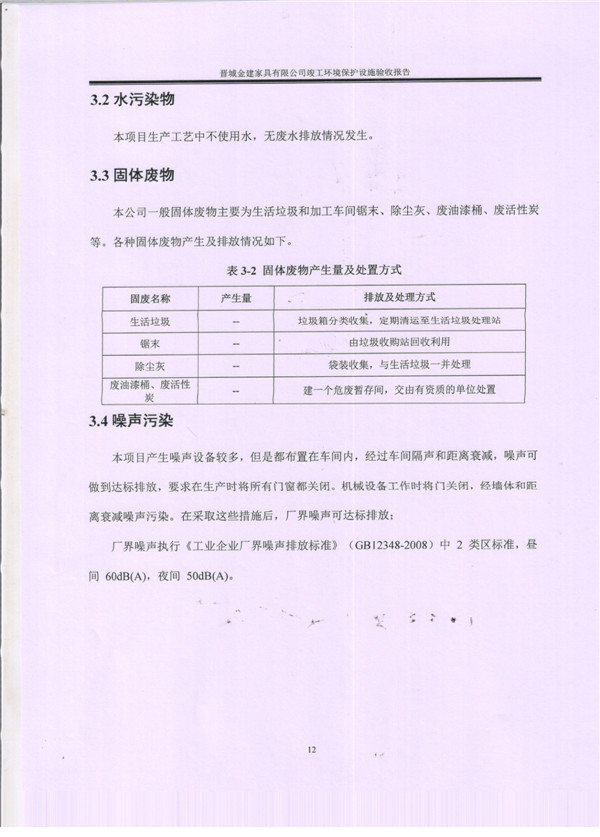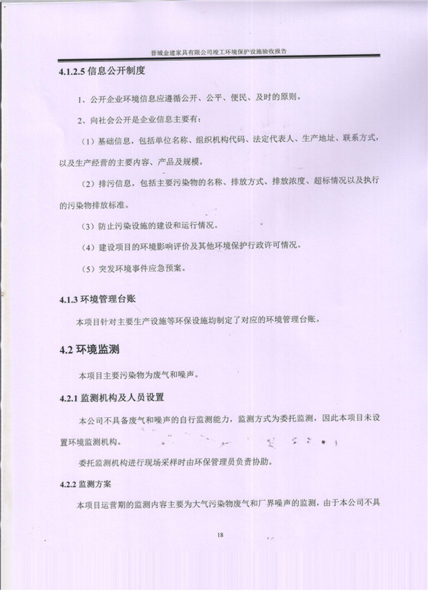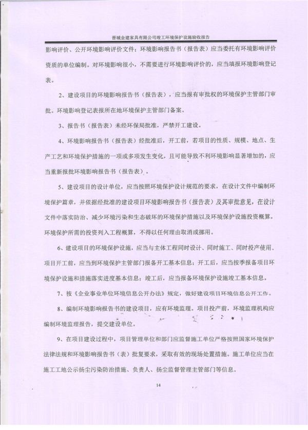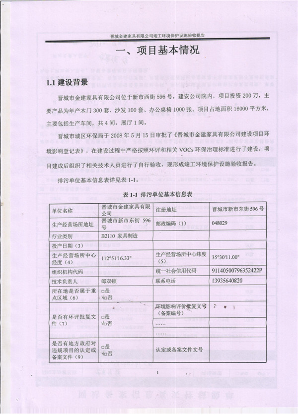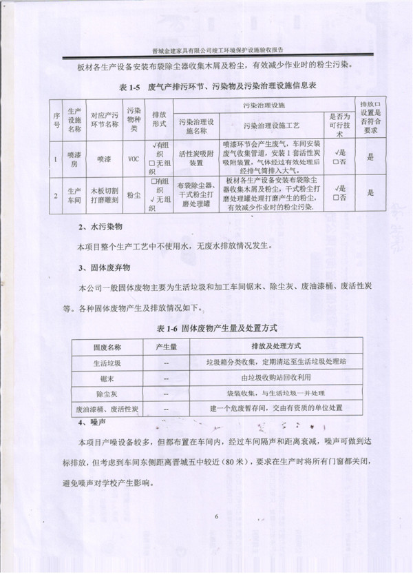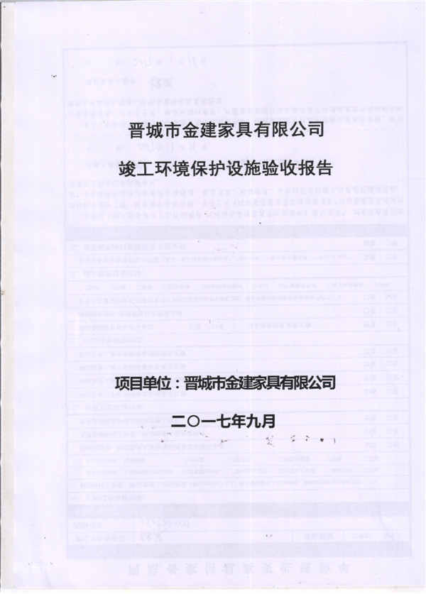 晉城市金建家具有限公司竣工環(huán)境保護(hù)設(shè)施驗(yàn)收報告